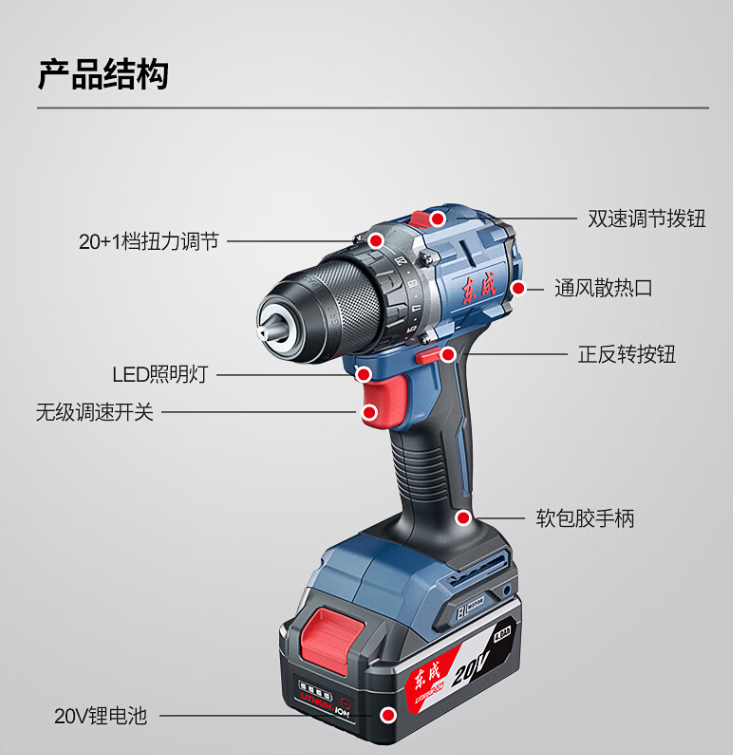 东成 DCJZ2060EM充电式无刷锂电电钻起子钻4.0Ah双电