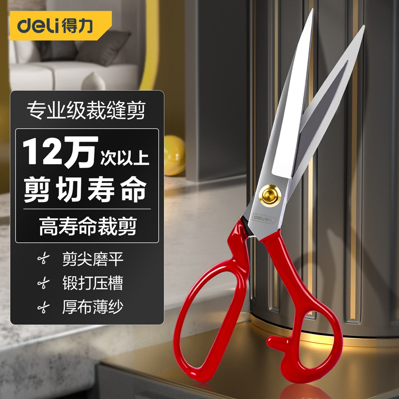 得力工具 专业级高寿命裁缝剪12万次寿命(红)