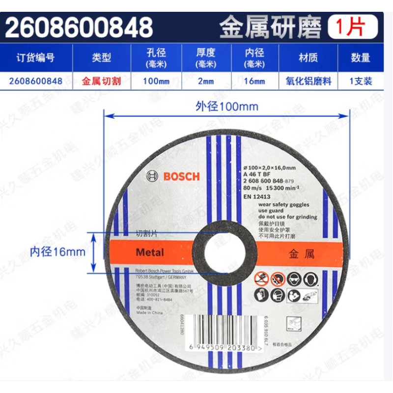 博世 2608601310 切割片外径100内径16厚度1.2
