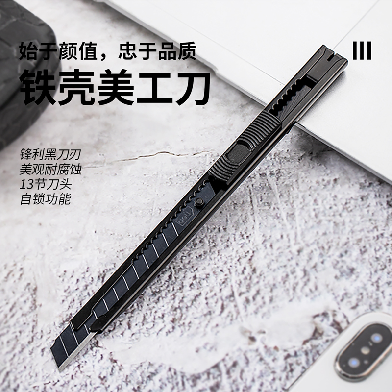 得力工具 铁壳美工刀60°角黑刃(黑)