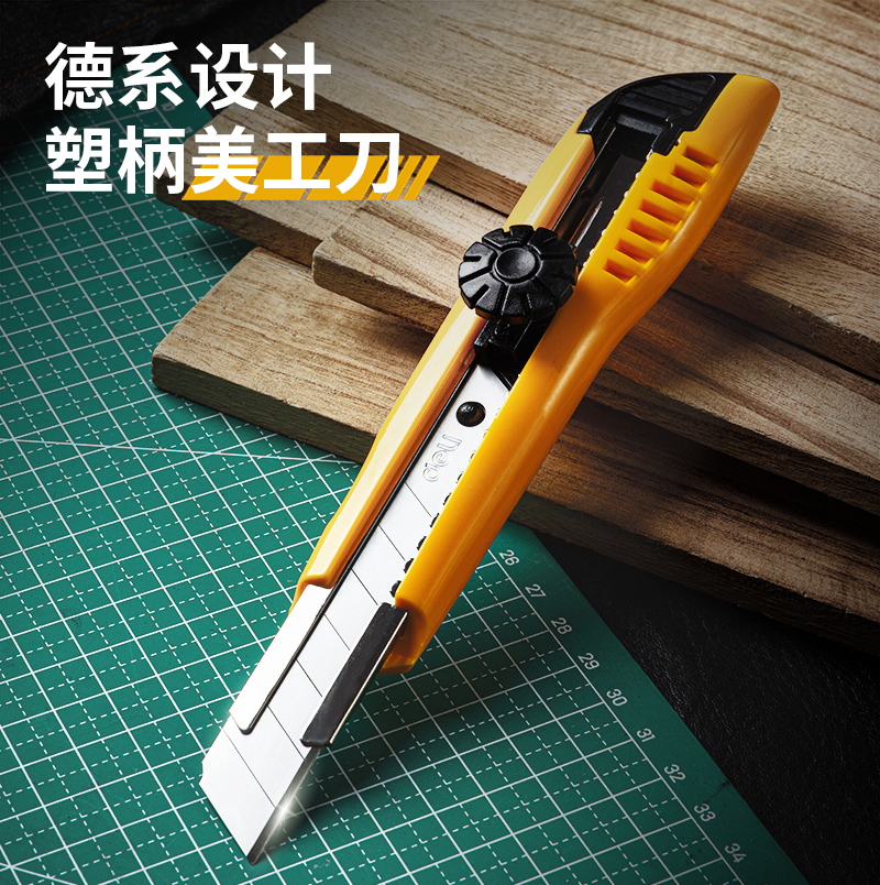得力工具 SK4塑柄美工刀30°角黑刃(黄)