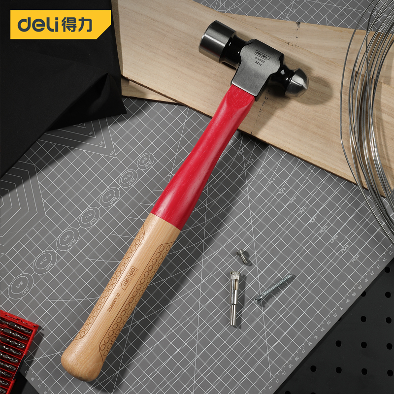 得力工具 专业级木柄圆头锤(红)
