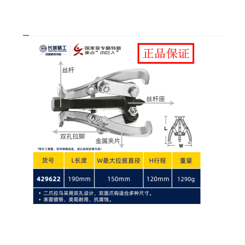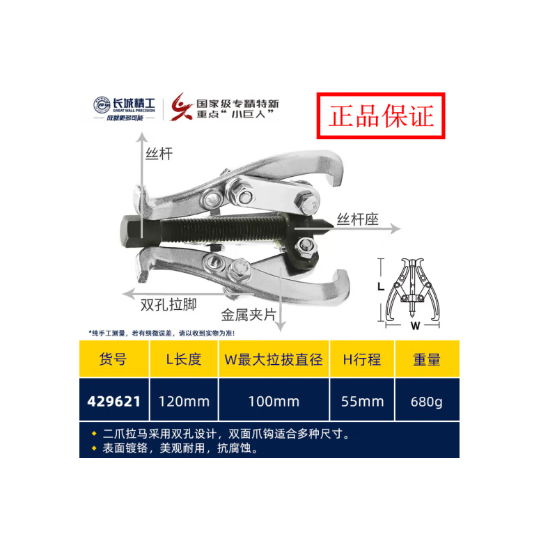 长城精工 429621 三爪拉马(锻打)100mm