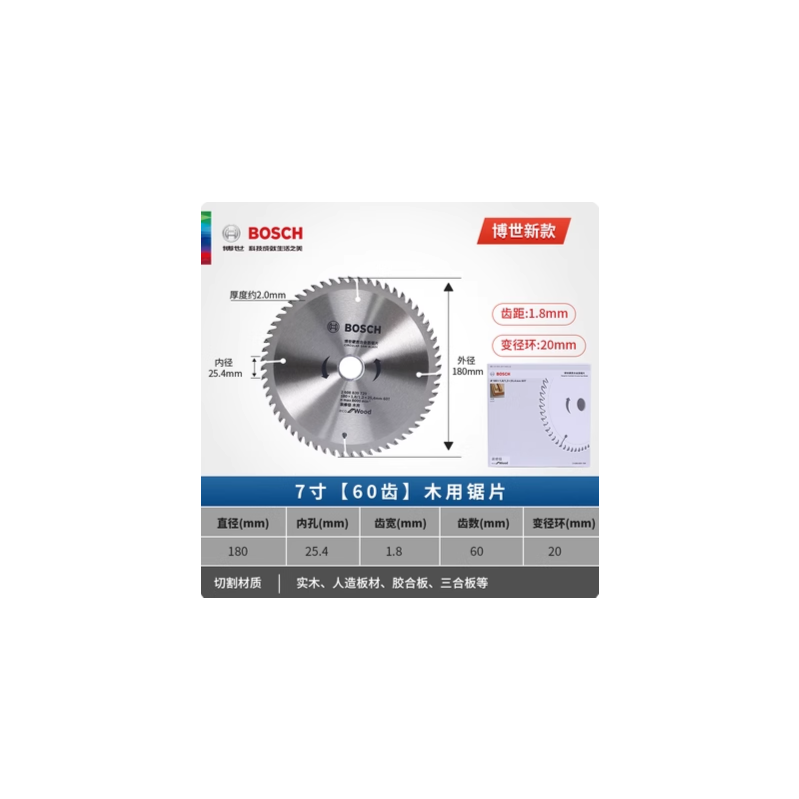 博世 2608839729 木用圆锯片 180x1.8/1.2x25.4mm T60齿