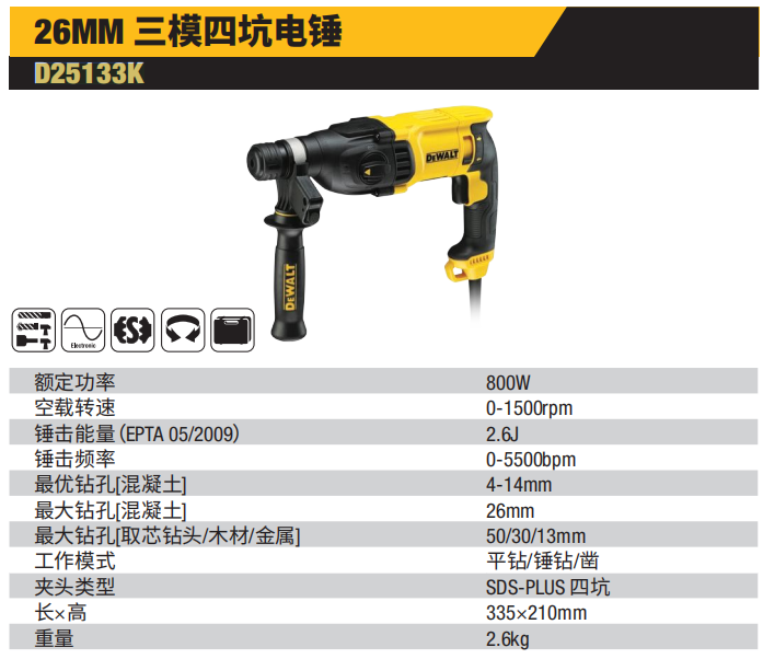 得伟 D25133K-A9 2KG 26mm 3模四坑电锤