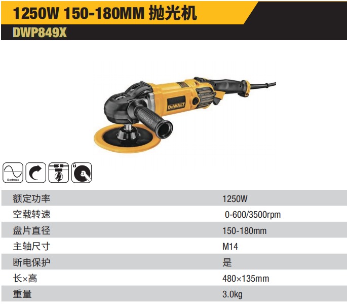 得伟 DWP849X-A9 180mm 1250W 抛光机