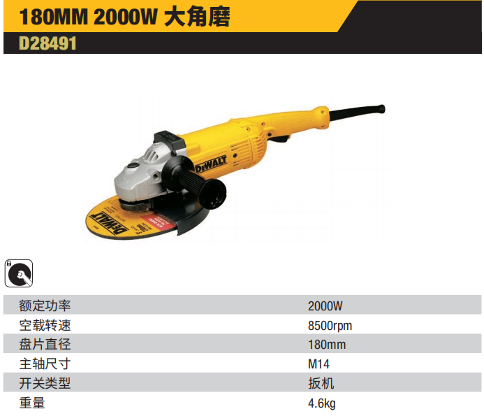 得伟 D28491-A9 180mm 2000W 角磨机(扳机开关)