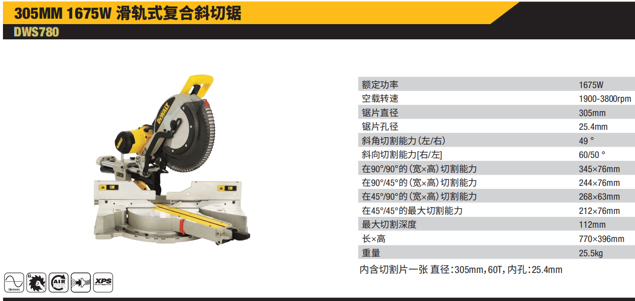 得伟 DWS715-A9 305mm 复合斜切锯