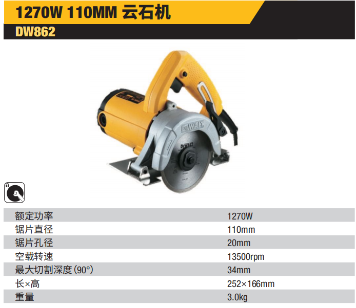 得伟 DW862-A9 110mm 1270W 云石机