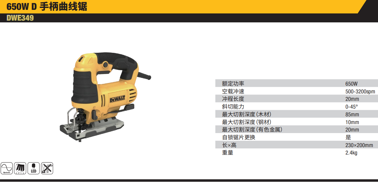 得伟 DWE349-A9 650W D手柄曲线锯