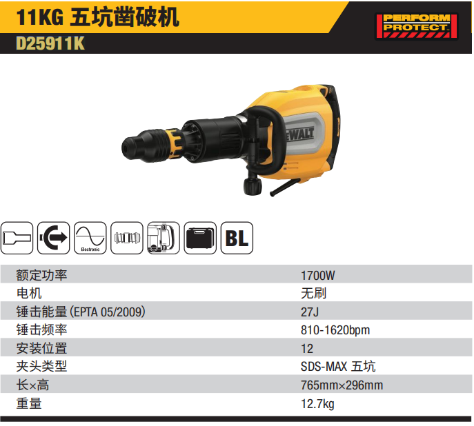 得伟 D25911K-A9 11KG 五坑凿破机