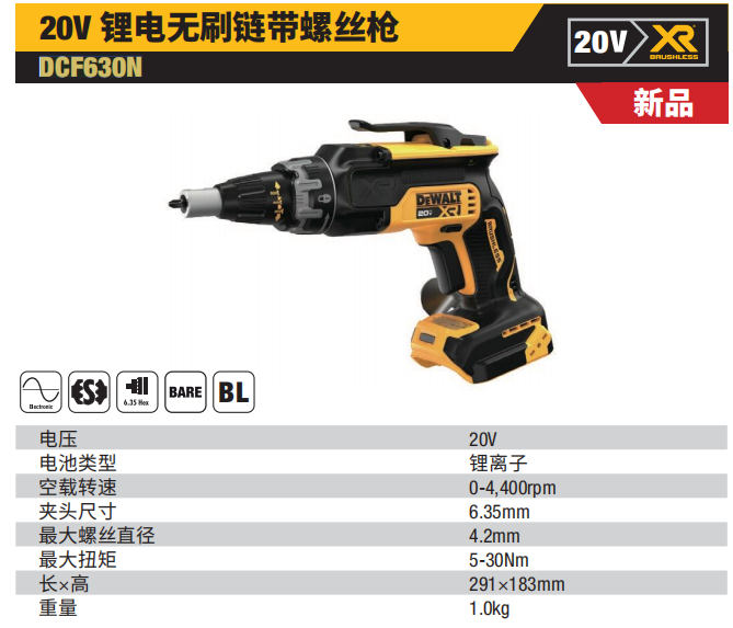 得伟 DCF630N-KR 20V锂电无刷链带螺丝枪单机纸盒装