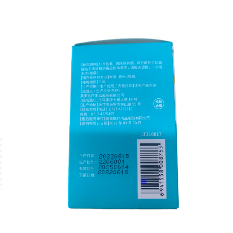 奥美医疗 LT310013 无菌创可贴 2.5cmx6.3cm Ⅳ型 透明款