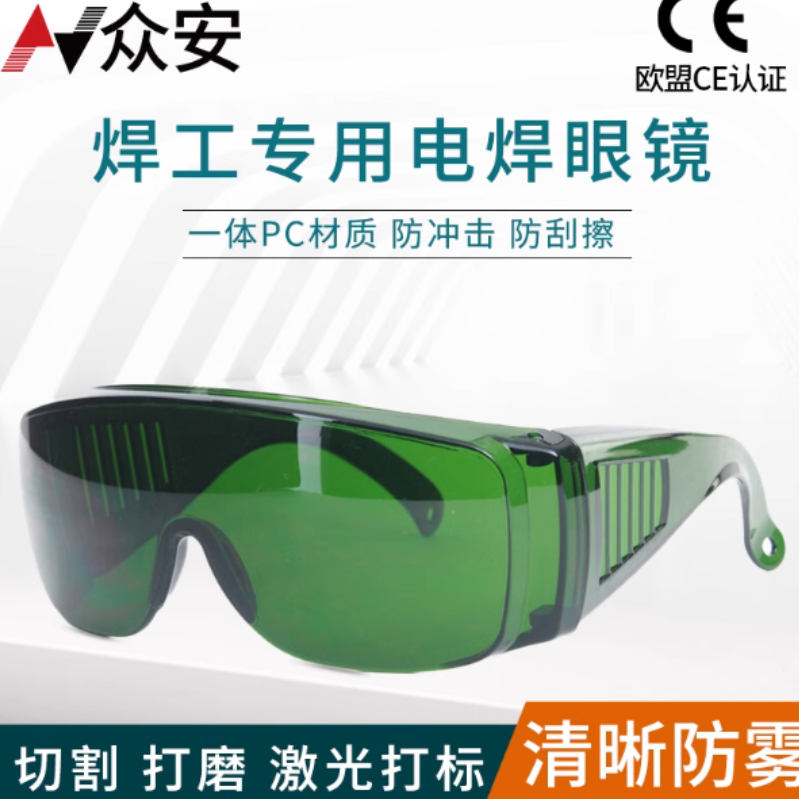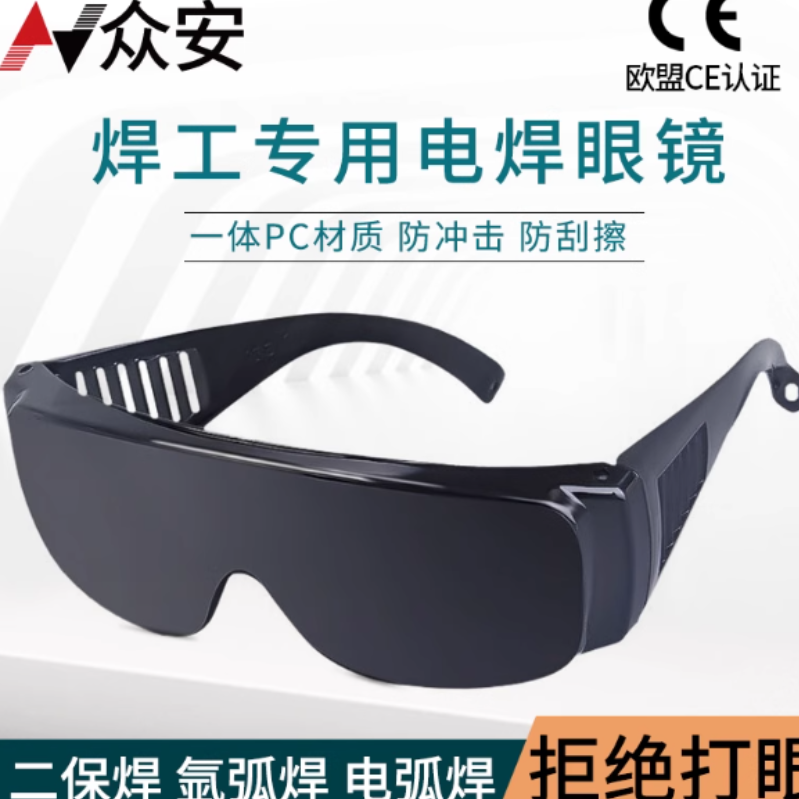众安 HF111-3-8 焊工眼镜电焊专用防护眼镜激光烧焊氩弧焊墨镜工业切割护目镜