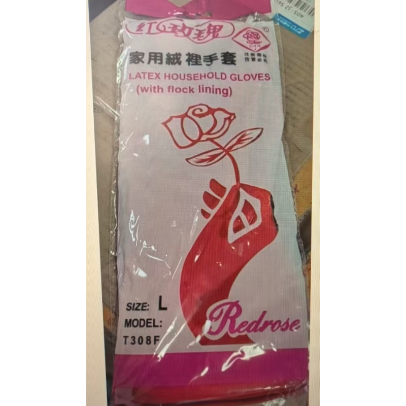 红玫瑰 T308F 家用绒里手套 红色