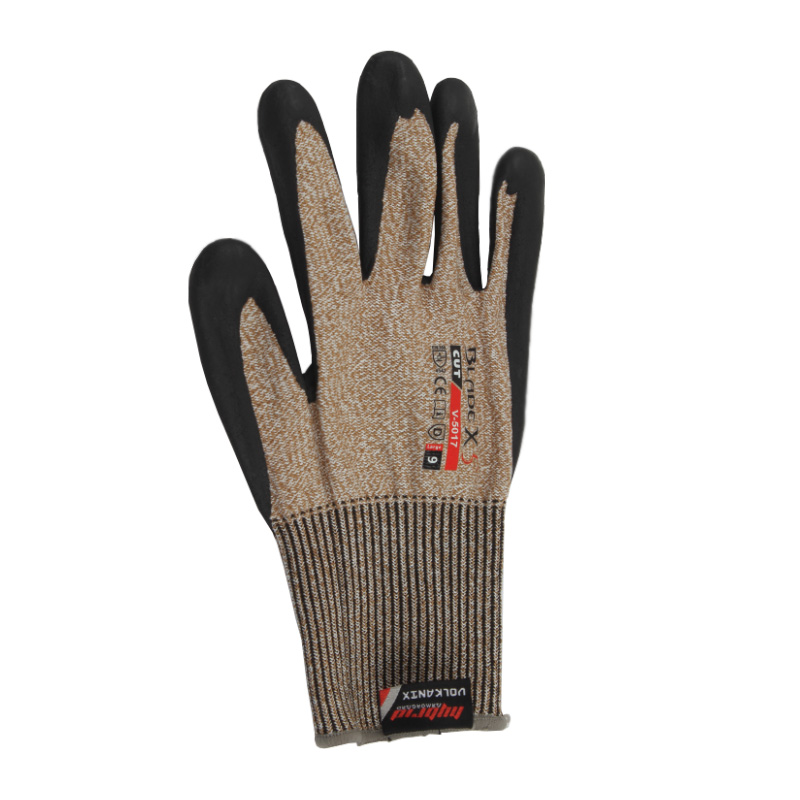 尺寸:9 式样:手掌涂层 Hybrid Armorgard Volkanix防切割纤维 涂层材料:丁腈 袖口:针织袖口(罗口) 颜色:棕色 24-26cm 耐磨等级:4级 防割等级:5级 耐撕裂等级:4级 防刺穿等级:3级 防割 EN388