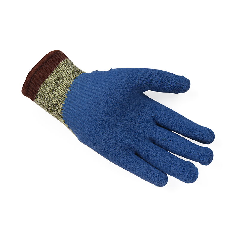 尺寸:均码 式样:手掌涂层 无衬里 涂层材料:天然乳胶 袖口:针织袖口(罗口) 颜色:黄/蓝色 245mm 耐磨等级:3级 防割等级:X级 耐撕裂等级:4级 防刺穿等级:4级 0.15kg 防割 EN388|EN407