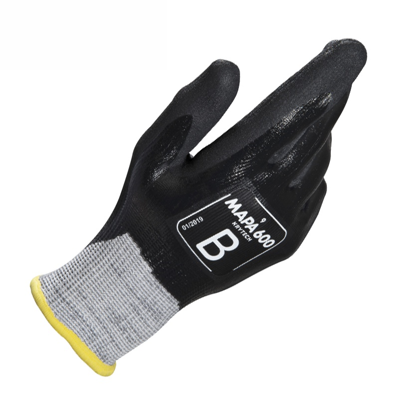 尺寸:9 式样:手指涂层 HDPE和复合纤维 涂层材料:丁腈 袖口:针织袖口(罗口) 颜色:黑色 耐磨等级:4级 防割等级:X级 耐撕裂等级:4级 防刺穿等级:3级 是否有粉:否 13 防静电:否 防割 EN388