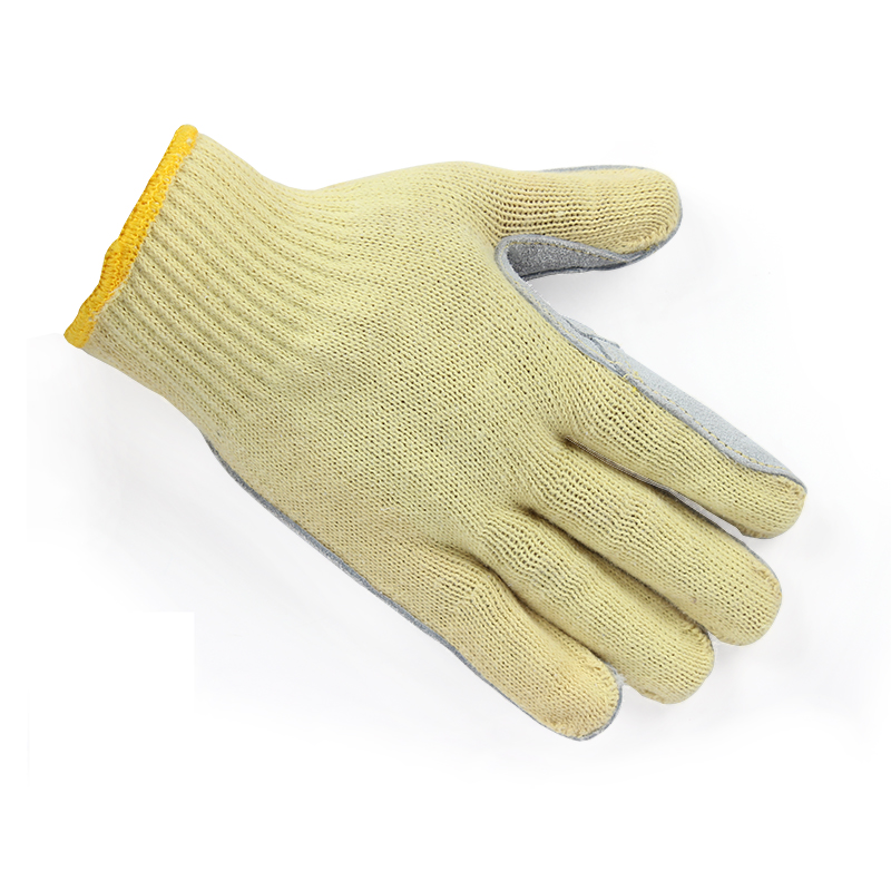 SF159DT涤纶包钢丝牛皮掌面5级防割手套
