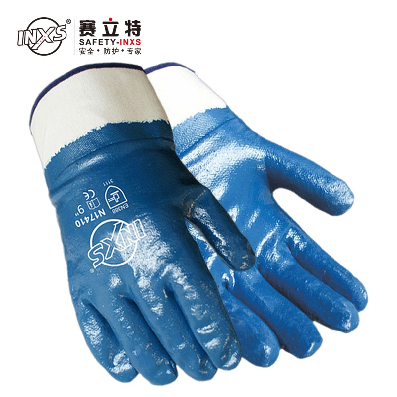 赛立特 N17410 丁腈全浸安全袖口蓝色手套
