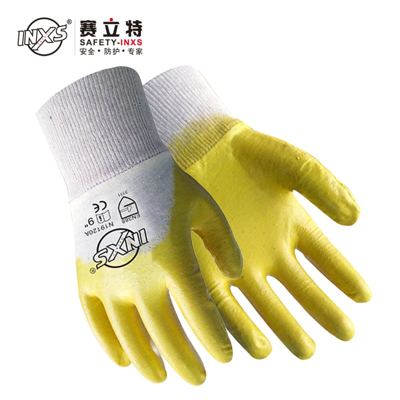 赛立特 N19120A 棉毛布3/4涂层丁腈黄色手套