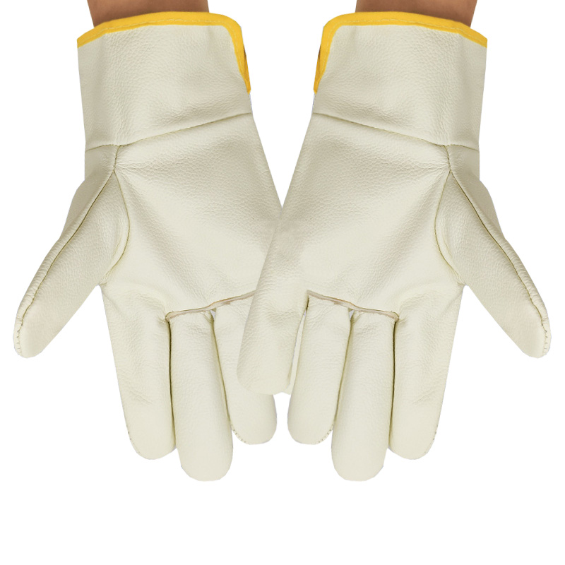 全皮 白色 均码 25cm 安全袖口 通用型 司机手套
