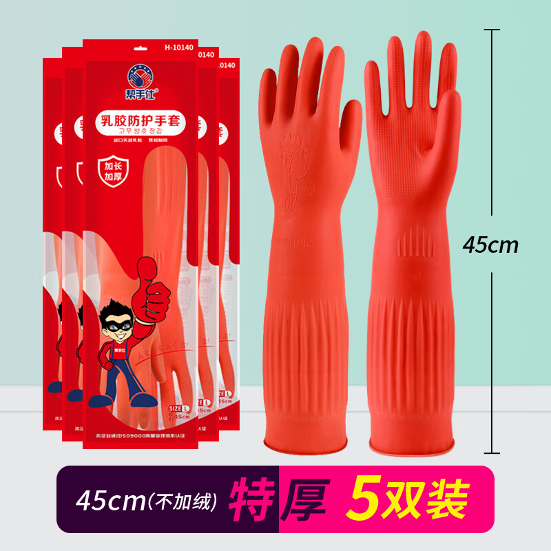 帮手仕 45cm 乳胶手套红色
