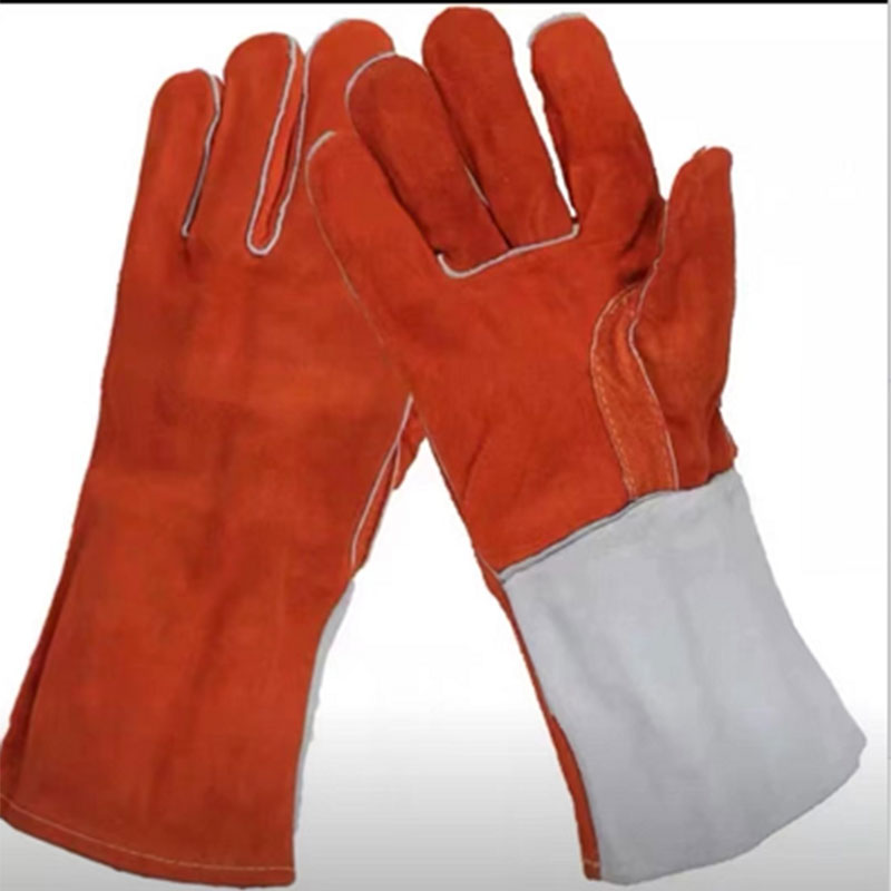 鲁粤翔龙 14寸 直指加固款电焊手套 桔红色