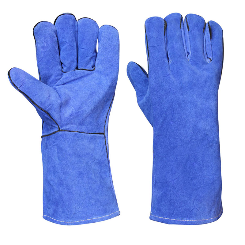 焊豹 LG1001 宝蓝色牛皮双层电焊焊接手套 牛皮防护手套 35CM