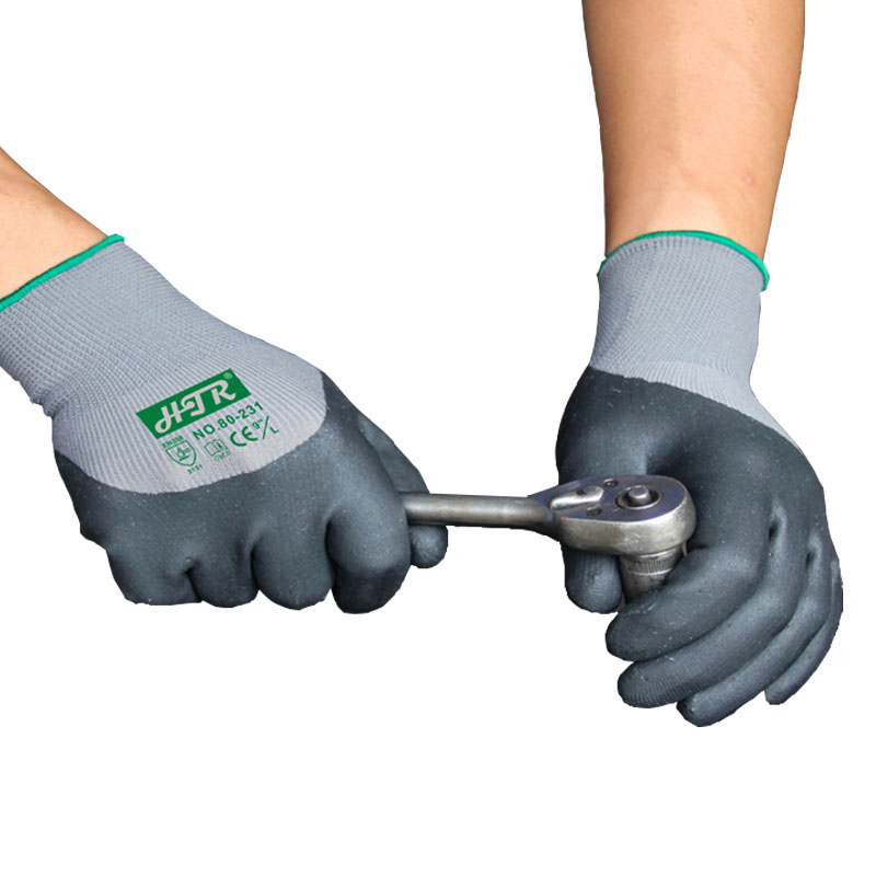 尺寸:均码 式样:3/4涂层 无衬里 涂层材料:发泡丁腈 袖口:针织袖口(罗口) 颜色:灰色 230-240mm 耐磨等级:3级 防割等级:1级 耐撕裂等级:3级 防刺穿等级:1级 通用型 EN388