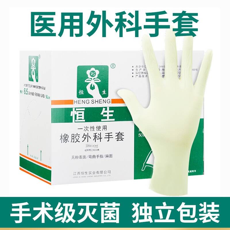 恒生 一次性橡胶外科手套无粉乳白色