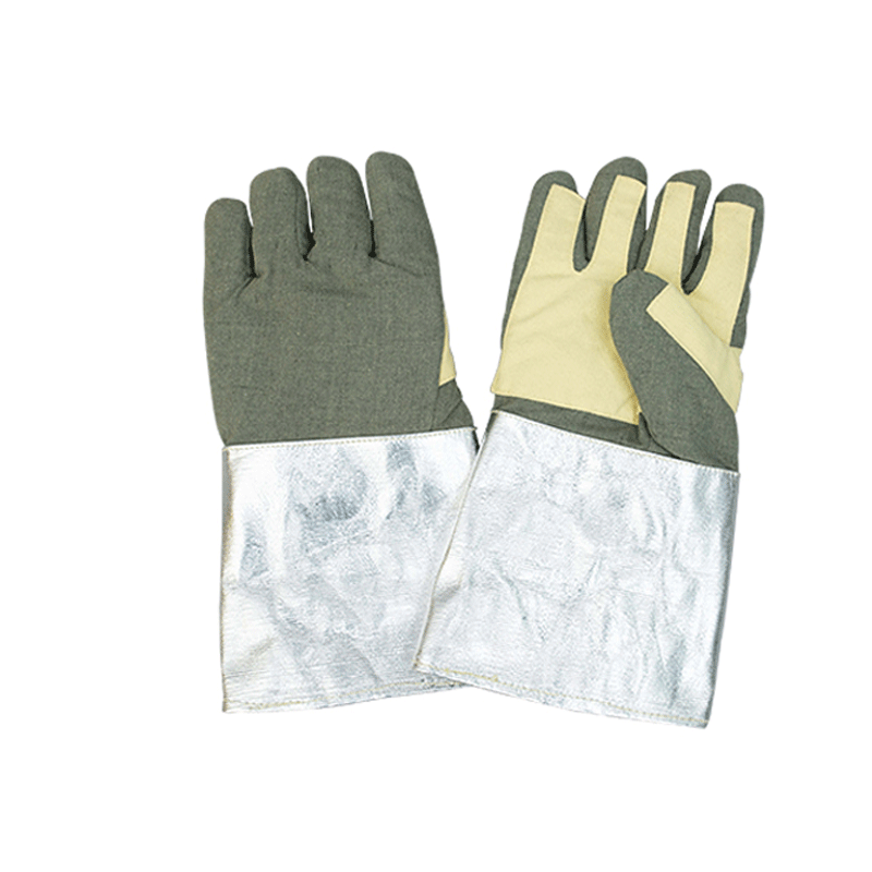 尺寸:均码 式样:铝箔覆层 多层隔热 耐高温材料 涂层材料:铝箔 袖口:直筒袖口 颜色:双色 38cm 650-1000°C 0.536kg 耐高温