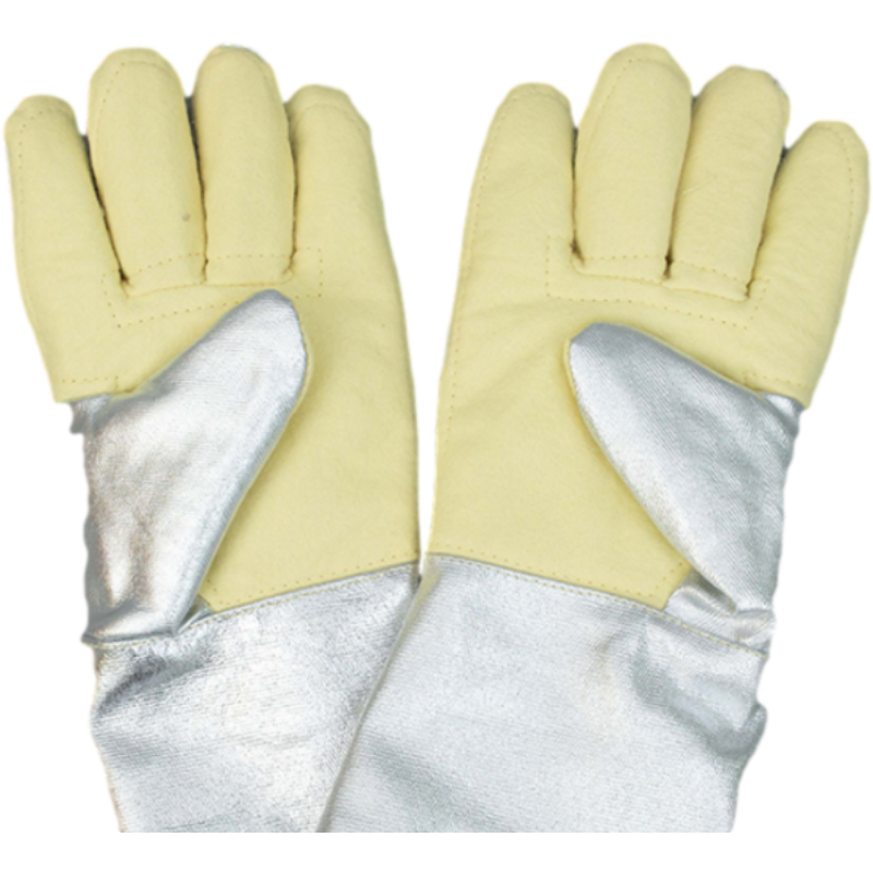 尺寸:均码 式样:铝箔覆层 涂层材料:铝箔 袖口:直筒袖口 颜色:银色 60cm 1000℃ 五指式 耐高温