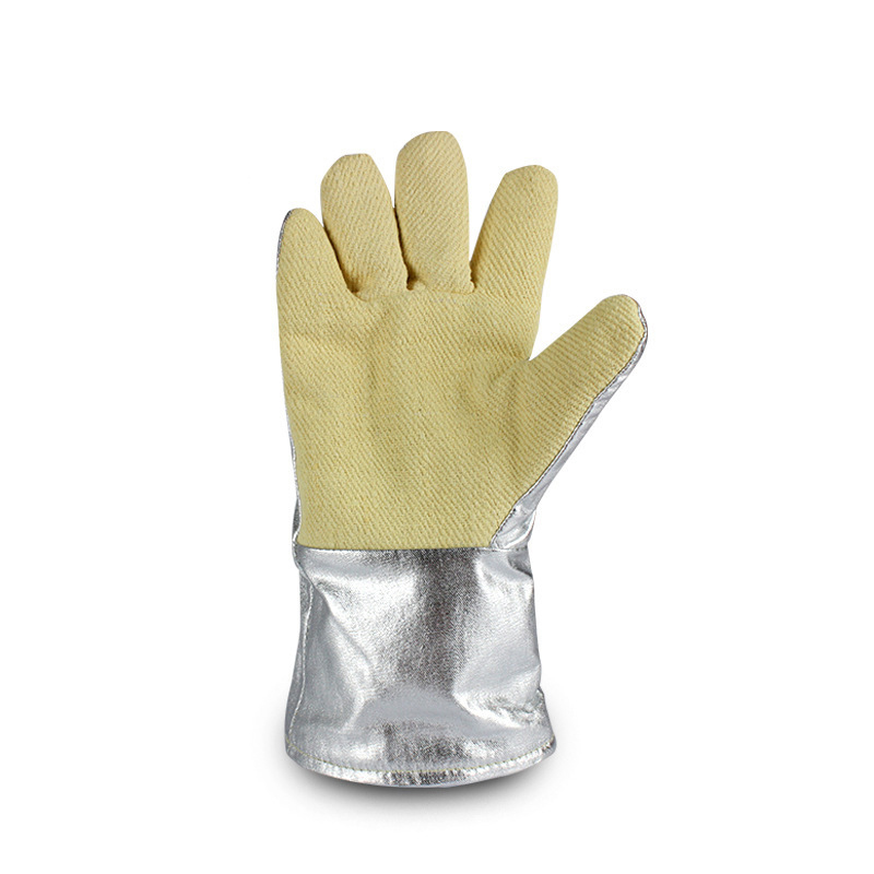 尺寸:均码 式样:铝箔覆层 涂层材料:铝箔 袖口:直筒袖口 颜色:黄色 34cm 500℃ 产地:国产 芳纶+铝箔材质 耐高温 EN388|EN407 芳纶