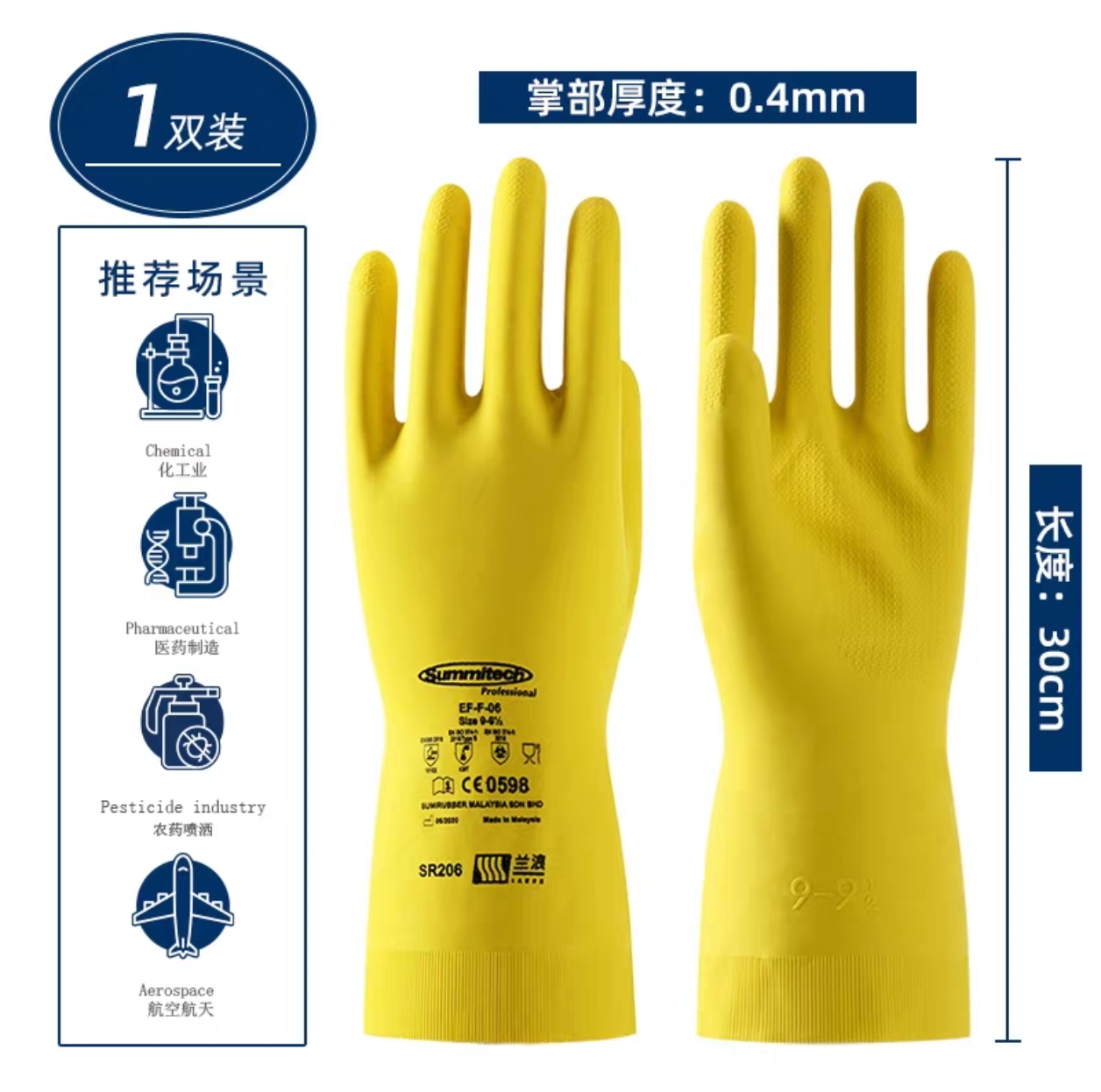 兰浪 SR242天然橡胶植绒防化手套42cm 加长款