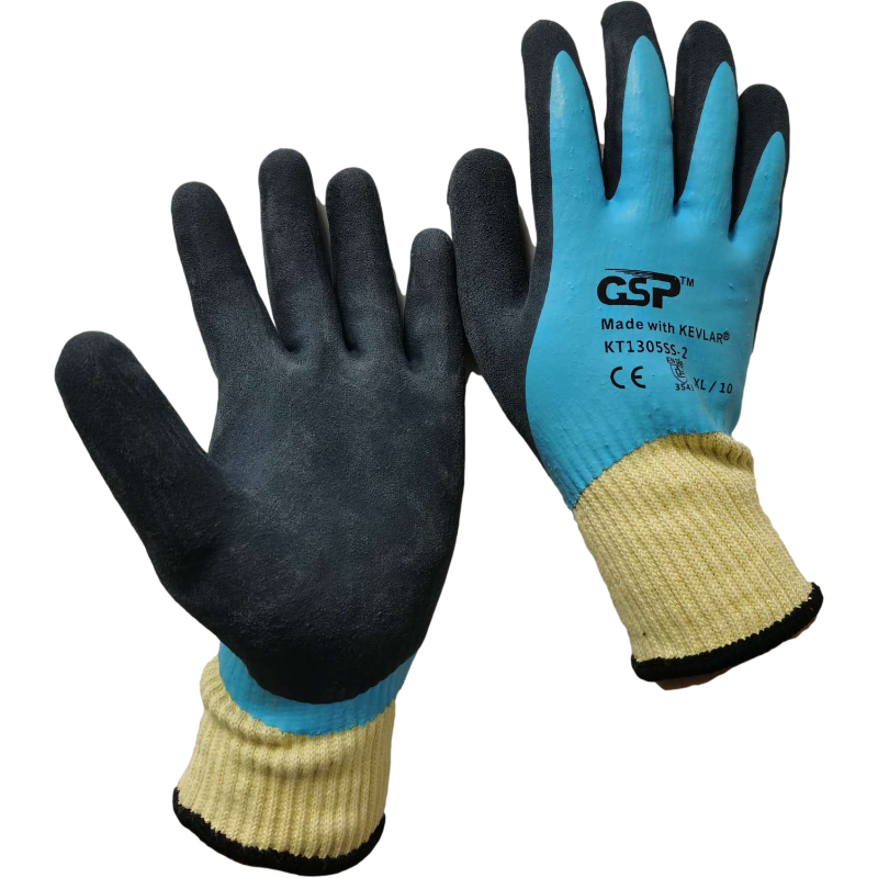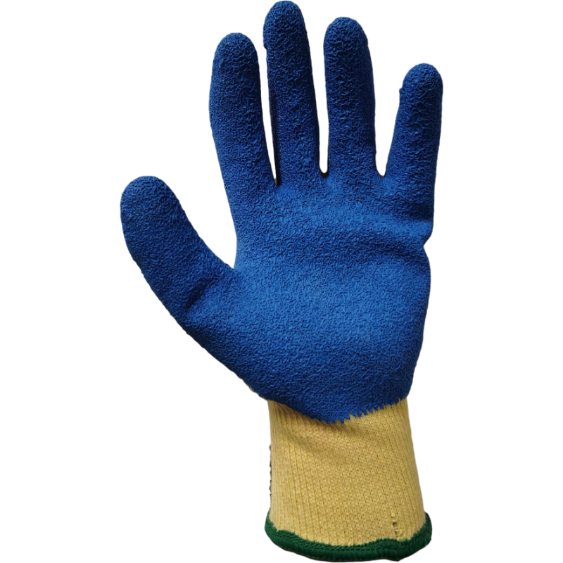 尺寸:均码 式样:手掌涂层 Kevlar® 纱线 涂层材料:天然乳胶 袖口:针织袖口(罗口) 颜色:蓝黑色 耐磨等级:3级 防割等级:5级 耐撕裂等级:4级 防刺穿等级:3级 防割 EN388