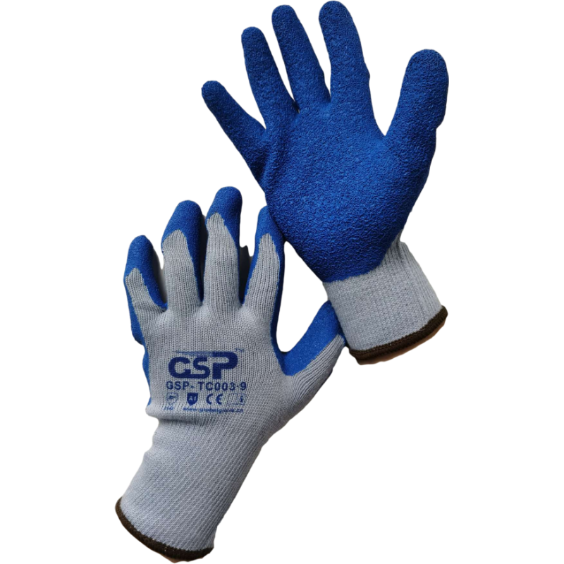 尺寸:9 式样:手掌涂层 涤棉纱线 涂层材料:天然乳胶 袖口:卷边袖口 颜色:蓝色 耐磨等级:3级 防割等级:1级 耐撕裂等级:4级 防刺穿等级:2级 10 通用型|防滑 EN388