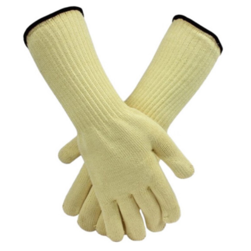 尺寸:均码 式样:针织 Kevlar® 毛毡 袖口:直筒袖口 颜色:黄色 500℃ 杜邦™Kevlar®高性能纤维 接触热指标四级 防割|耐高温 EN407