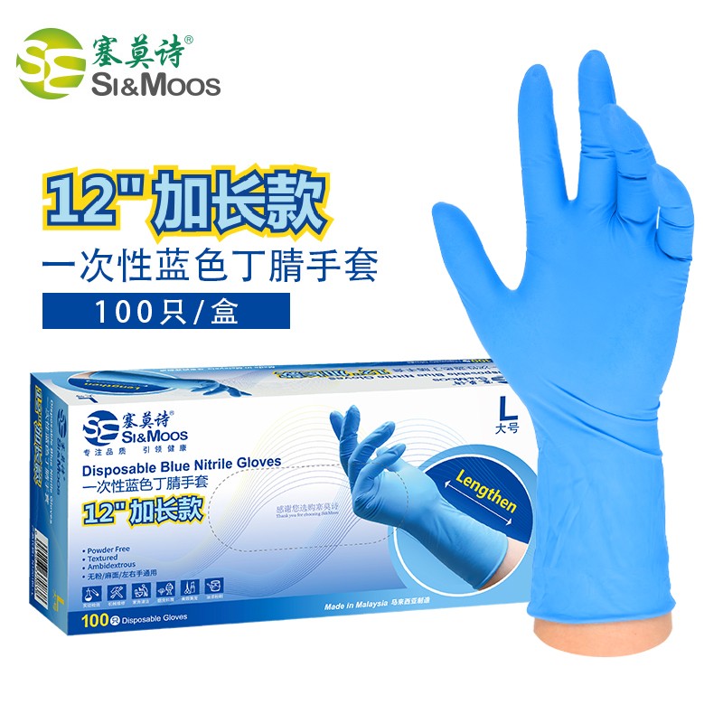 塞莫诗 N1201BL一次性蓝色丁腈手套(12英寸加长版)