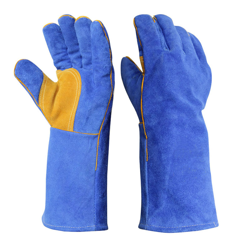 焊豹 LG884 湖蓝色牛皮双层电焊焊接手套 牛皮防护手套 35CM