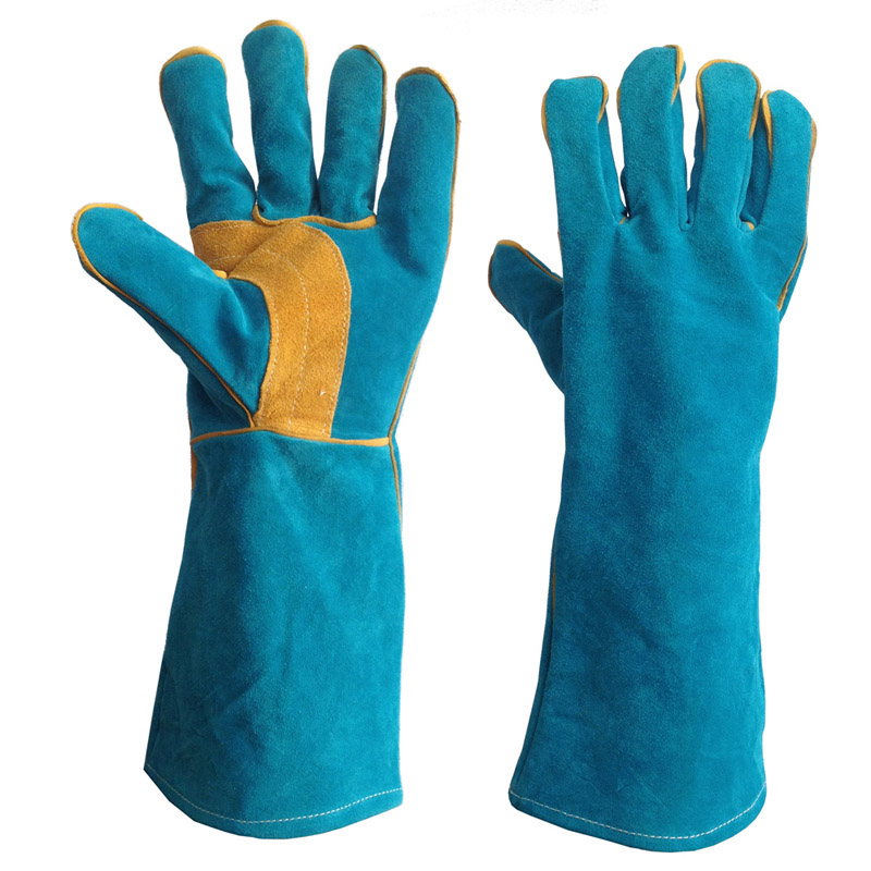 焊豹 LG1013 翠蓝色牛皮双层电焊焊接手套 牛皮防护手套 35CM
