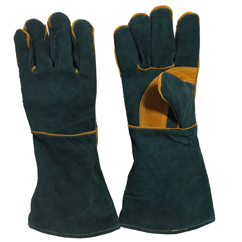 焊豹 LG885 墨绿色牛皮双层电焊焊接手套 牛皮防护手套 35CM