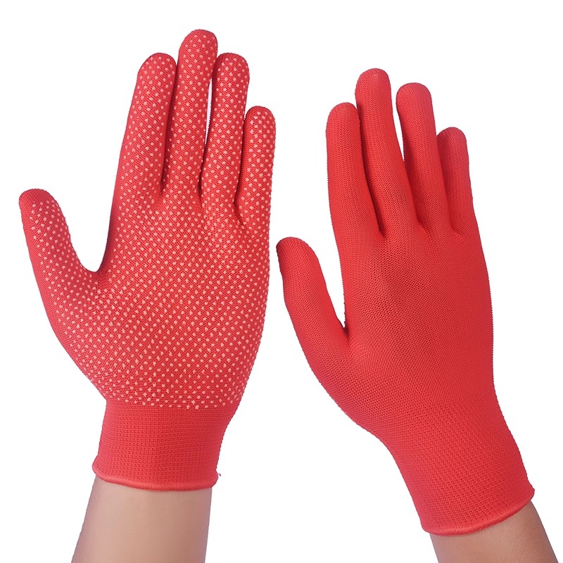 佳护 大红色尼龙点珠手套耐磨防滑手套
