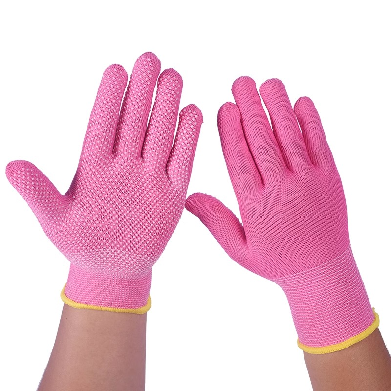 佳护 粉色黄边尼龙点珠手套耐磨防滑手套
