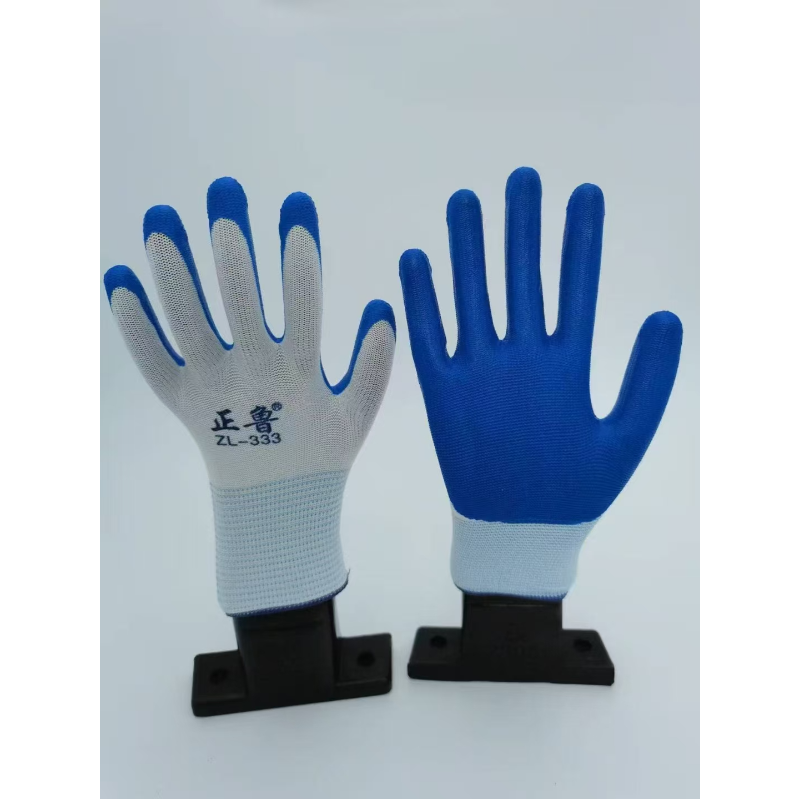 正鲁 333 丁腈 挂胶尼龙 蓝白 手套