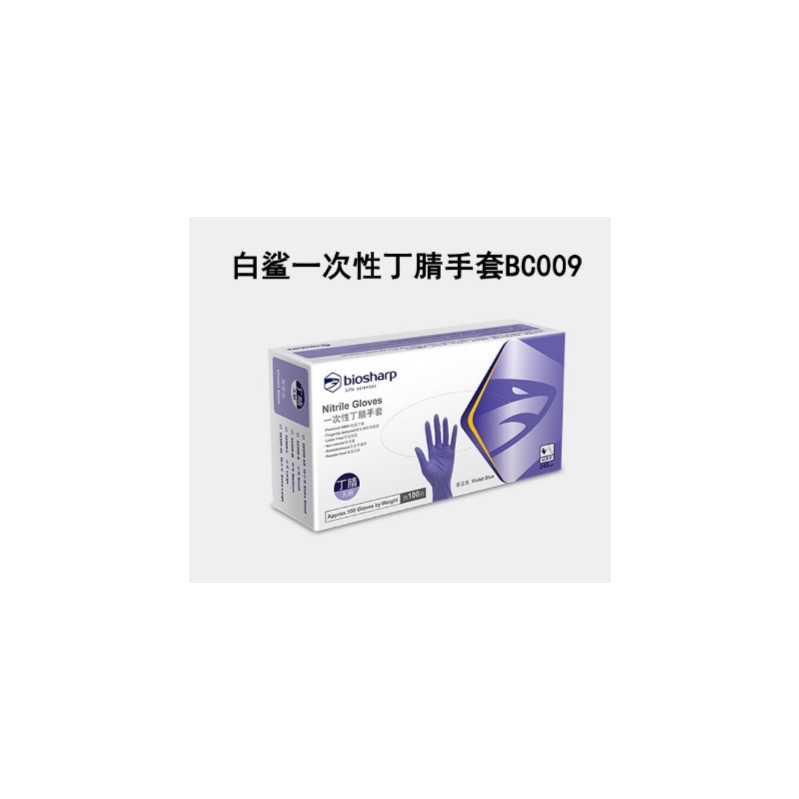 Biosharp白鲨 蓝紫色丁腈手套BC009 3.2g/只(100只/盒)
