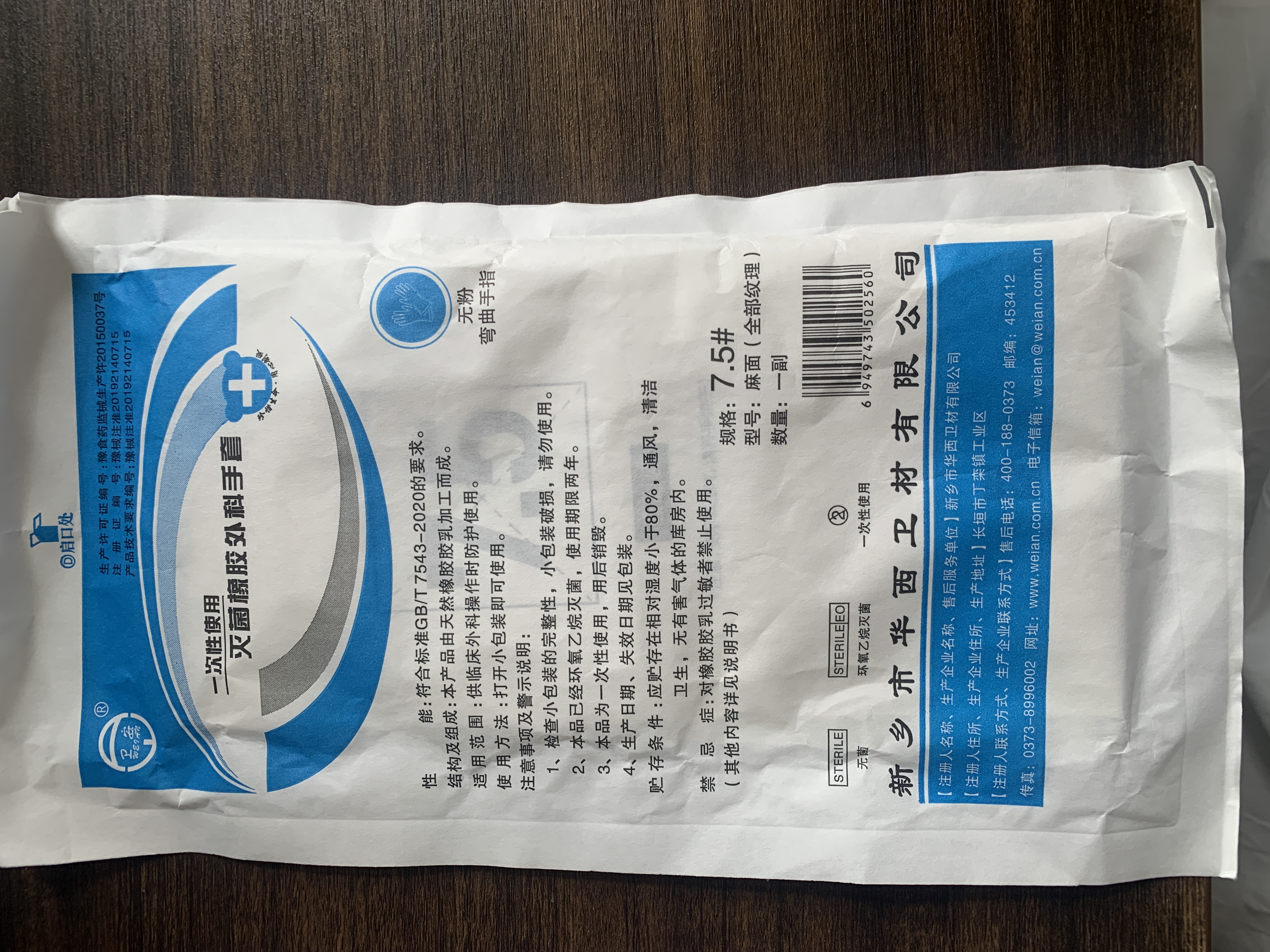 卫安 一次性使用 灭菌橡胶外科手套无粉