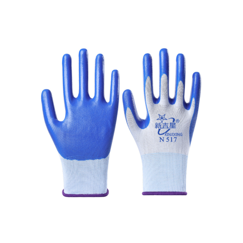 新吉星 N517 丁腈挂胶 手套 白纱蓝