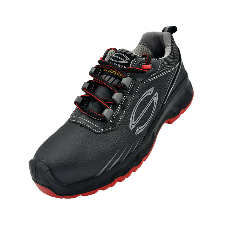 尺码:35 颜色:黑色 鞋帮款式:低帮 鞋扣类型:O型扣 保护足趾:是 防刺穿:是 防静电:是 防滑:是 磨面牛皮+透气网布 包头材质:非金属复合材料 复合材料 保护脚趾|防刺穿|防静电|防滑 EN ISO 20345