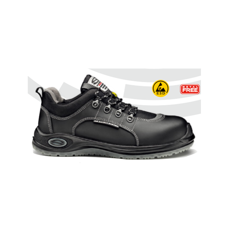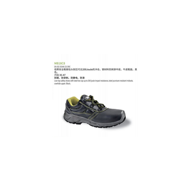 尺码:35 颜色:黑色 鞋帮款式:低帮 鞋扣类型:O型扣 保护足趾:是 防刺穿:是 防静电:是 防滑:是 磨面牛皮+透气网布 包头材质:非金属复合材料 复合材料 保护脚趾|防刺穿|防静电|防滑 EN ISO 20345